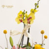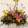 Dale un toque de luz a su día con este diseño exclusivo de Florería de León. Alicia reúne una selección premium de orquídeas, rosas y follaje fino en una armonía perfecta de tonos amarillos y purpuras. Un regalo vibrante, elegante y listo para lucir en su base de cerámica de lujo.