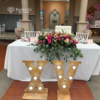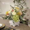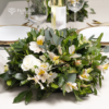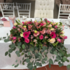 Este impresionante arreglo floral es la pieza central ideal para la mesa principal de cualquier evento, desde bodas hasta fiestas de gala. Su diseño alargado y abundante, con una caída de follaje que fluye elegantemente sobre la mesa, crea un impacto visual espectacular. La combinación de flores frescas y hojas frondosas añade una sensación de lujo y romance que hará que los momentos más especiales se sientan aún más únicos. Nos adaptamos a los colores y al estilo de tu evento, para que este arreglo destaque y complemente a la perfección tu decoración.