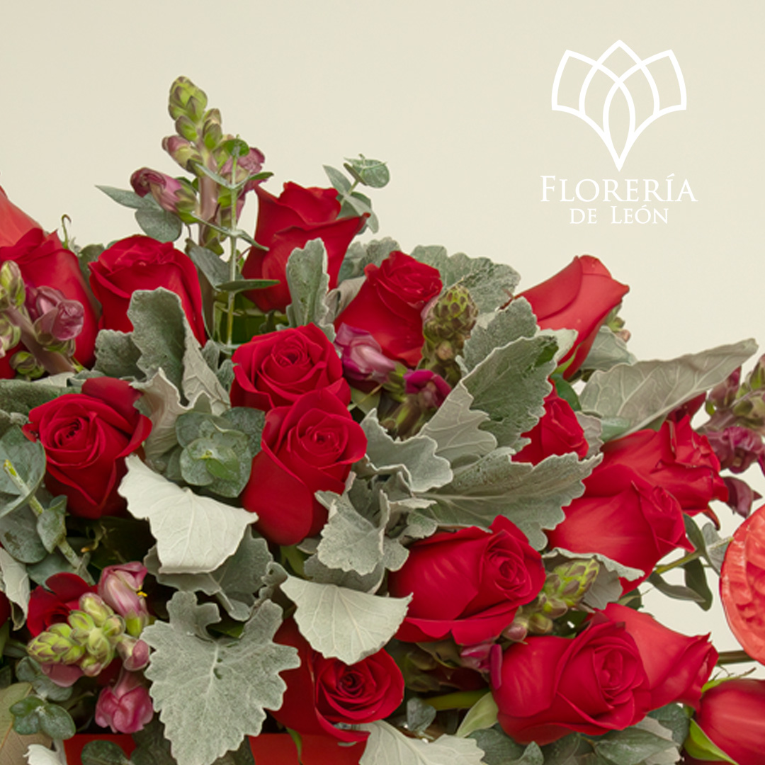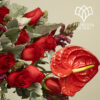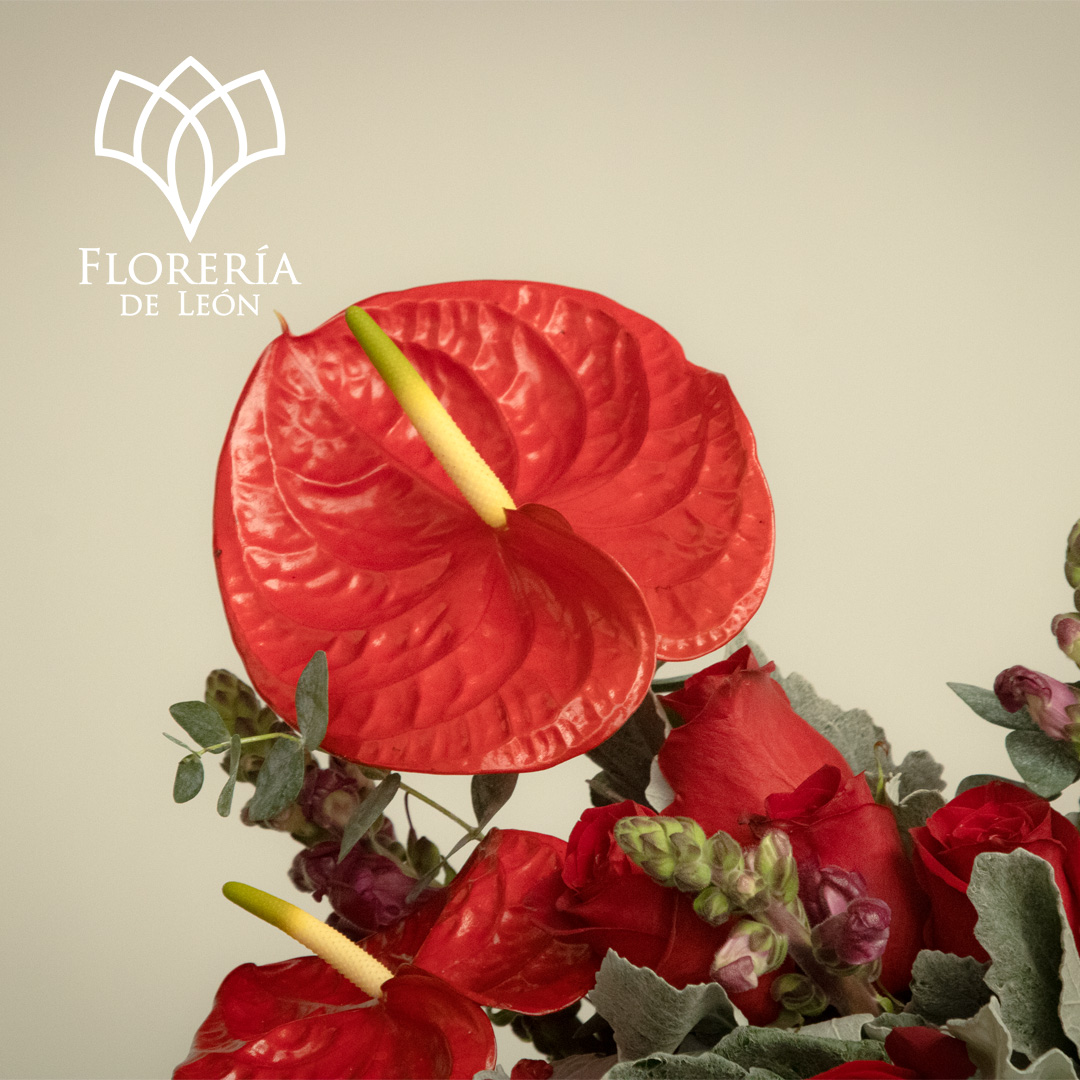 Un diseño sofisticado entre rosas rojas y anturios. Es el regalo perfecto para cautivar y dejar una impresión inolvidable.
