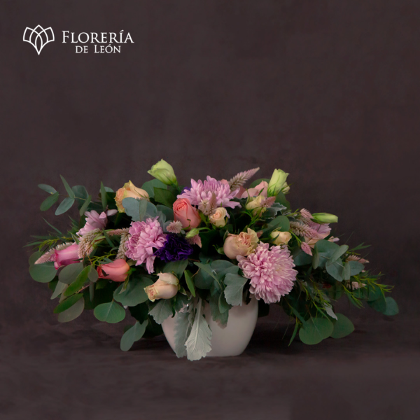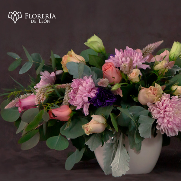 Este centro de mesa es perfecto, con una cuidada selección de flores de temporada y follaje fresco, este arreglo es una pieza central que realza cualquier espacio. La base moderna complementa el diseño floral, creando un look elegante y natural. Personalizamos este arreglo para que se adapte perfectamente a la paleta de colores de tu evento, haciendo de este centro de mesa la opción ideal para bodas, eventos corporativos y celebraciones especiales.