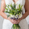 Lo que realmente lo hace único es su borde escultórico, un envoltorio de alambre decorativo plateado con pequeñas perlas, que le confiere un aire de fantasía y sofisticación. Este detalle le da una estructura etérea y permite que el ramo se destaque como una pieza de arte. Perfecto para la novia que desea un diseño audaz, texturizado y memorable.