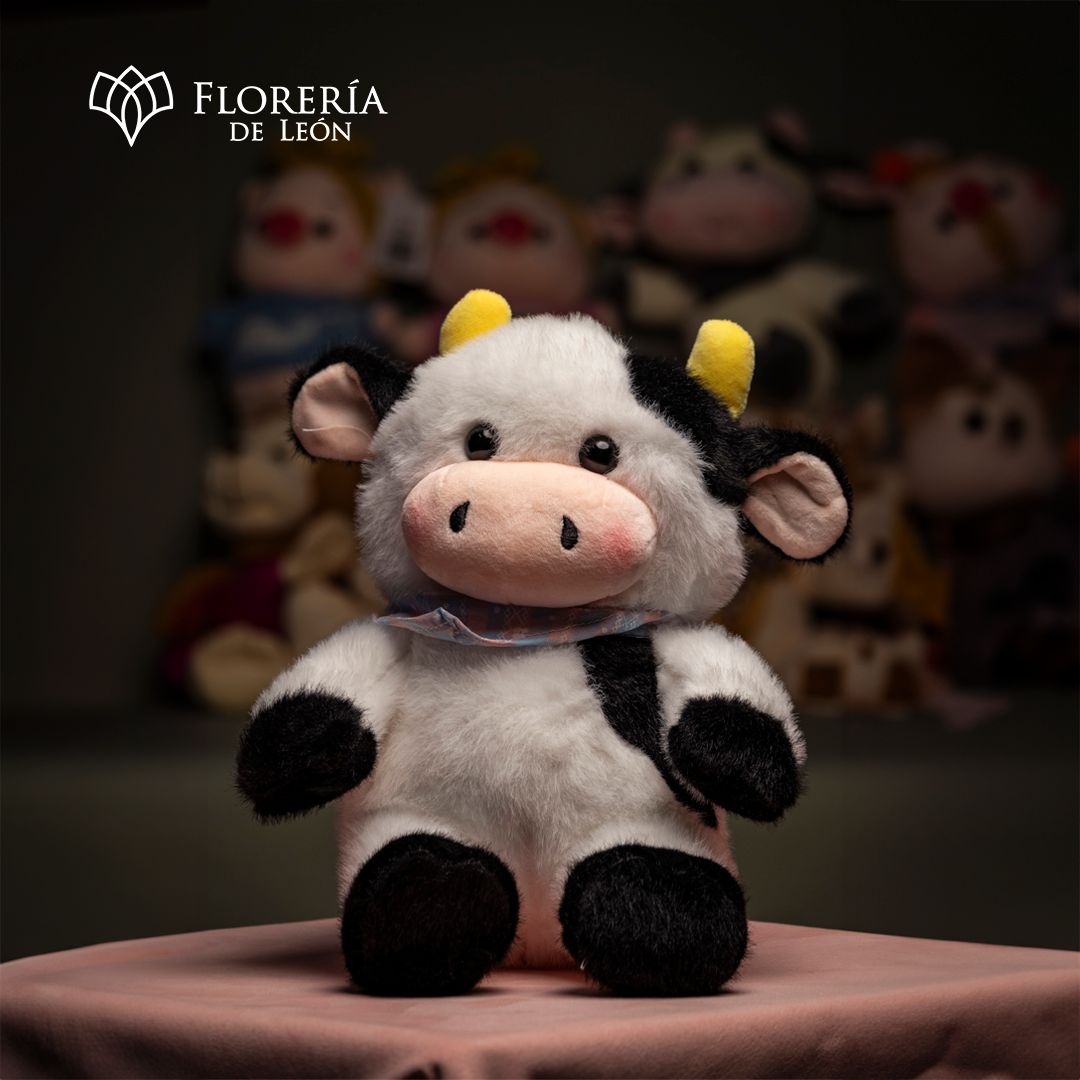 Haz sonreír a esa persona especial con nuestra vaquita más suave. Con su pelaje ultra esponjoso, detalles en rosa pastel y una tierna pañoleta, es el complemento perfecto para cualquier ramo de flores o como un regalo inolvidable por sí sola.